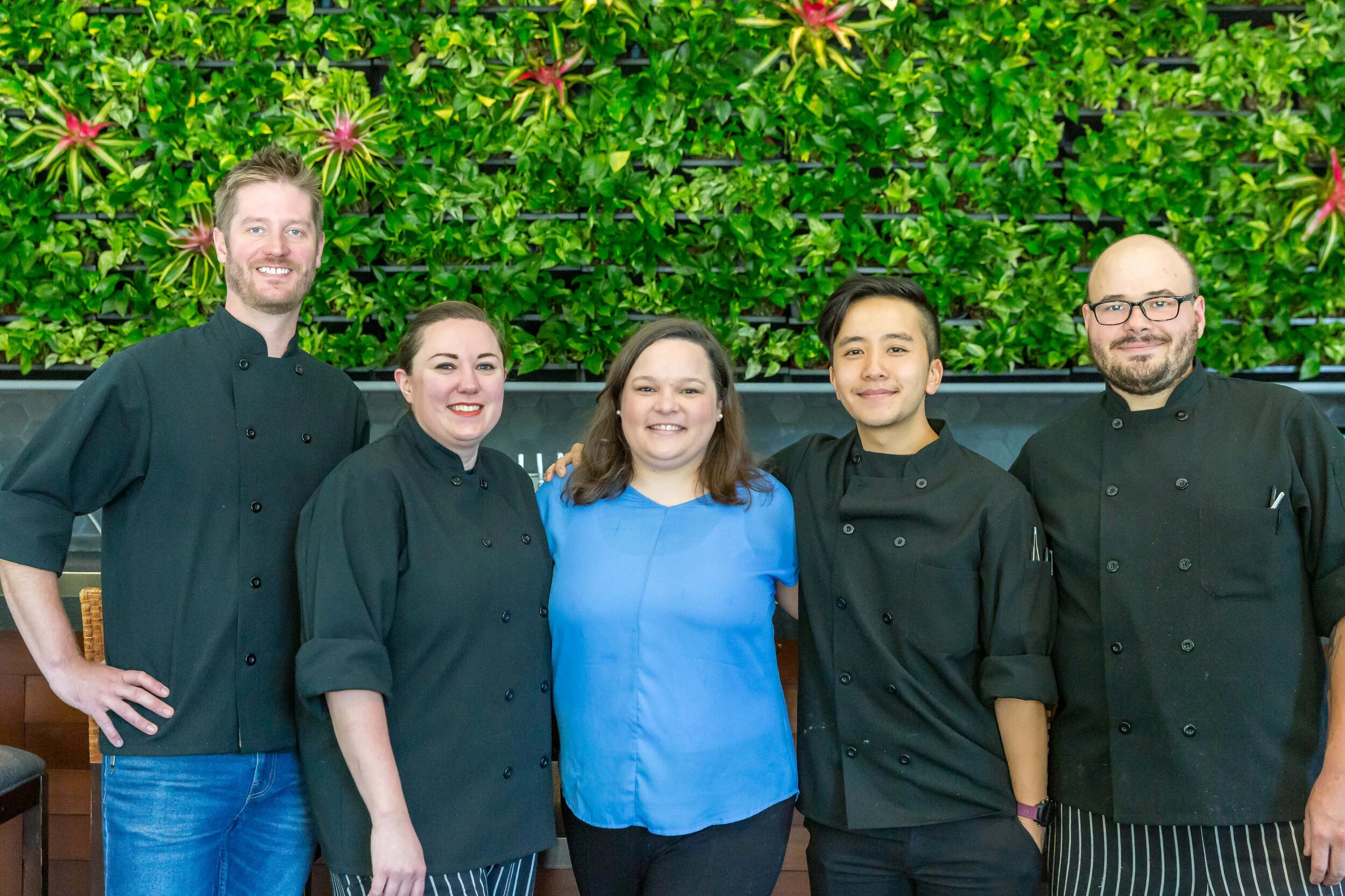 A centerpiece to the new restaurant is its zen-like ambiance. kō•än incorporates living walls, fountains and wood textured furniture throughout the restaurant, beautifully redesigned by Courtney Evans of Tactile Design.