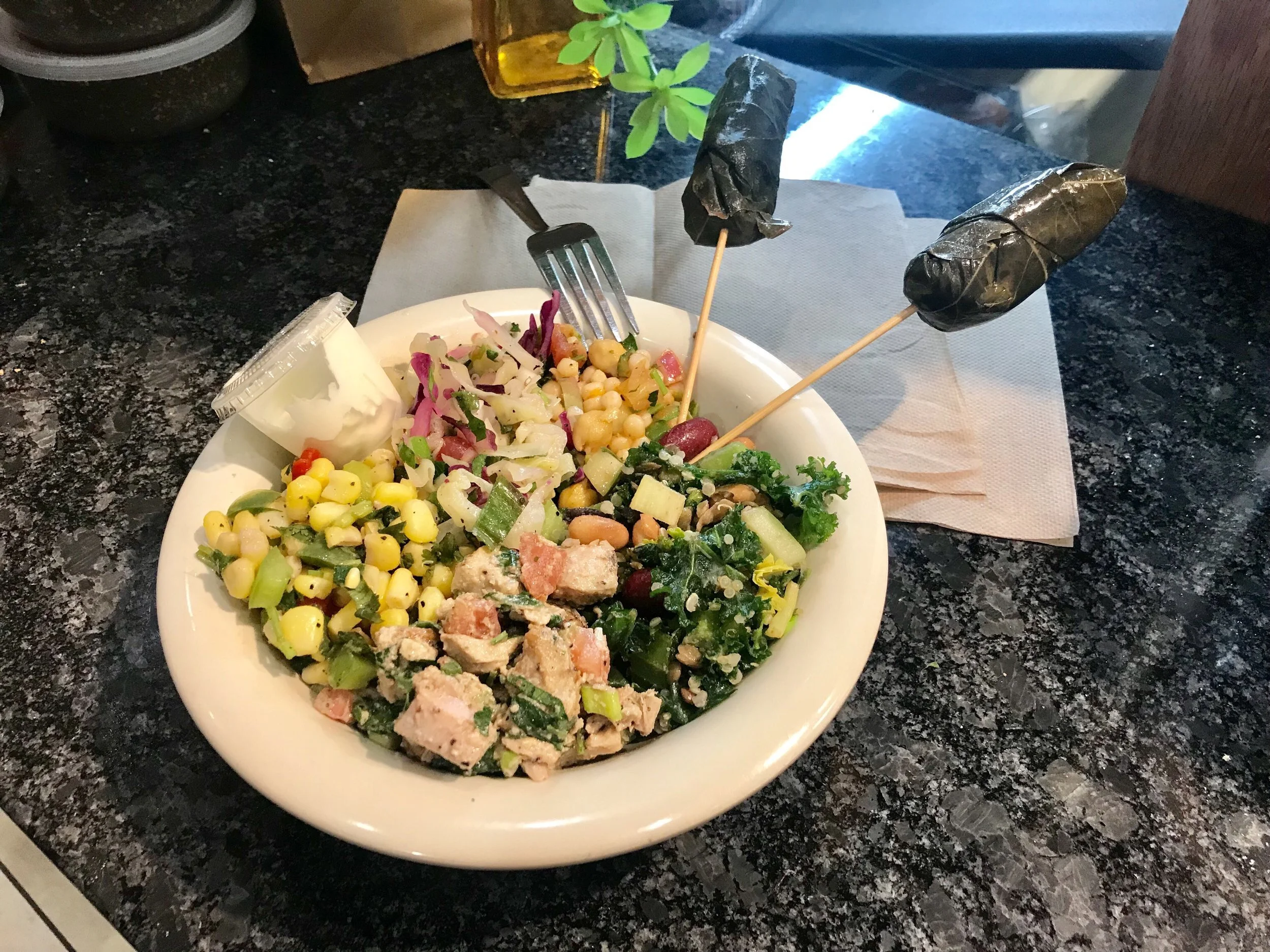 Sassool was inspired to create the “kitchen sink” salad for their customers who stand in line and just can’t decide. Here’s a salad that literally has everything!